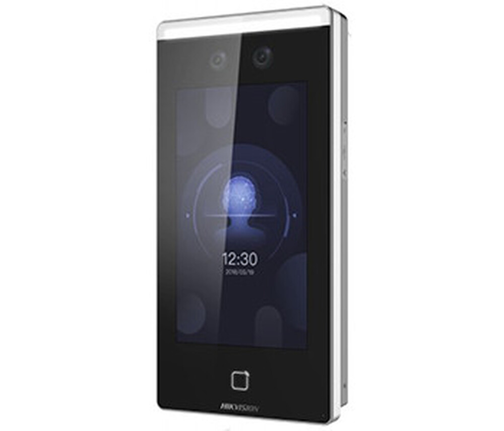 Термінал контролю доступу з розпізнаванням осіб. Екран: 7 "touch screen; Камера: dual-lens 1МП CMOS c WDR; Пам'ять: 6000 осіб, 50000 подій; Час розпізнавання: 0.2с; Функції: 6 режимів обліку відвідуваності, визначення автентичності біометричних даних особи, автономна робота, підтримка роботи з Hik-Connect, можливість розширення. інтерфейси: 1x RJ-45, 1x RS-485, 1x Wiegand, 1х тривожний вихід, 2х тривожний вхід, 1x USB, 1x замок, 1х дверний датчик, 1х кнопка вихід. Живлення: DC 12В / 24Вт ; Розміри: 290х117х33 мм