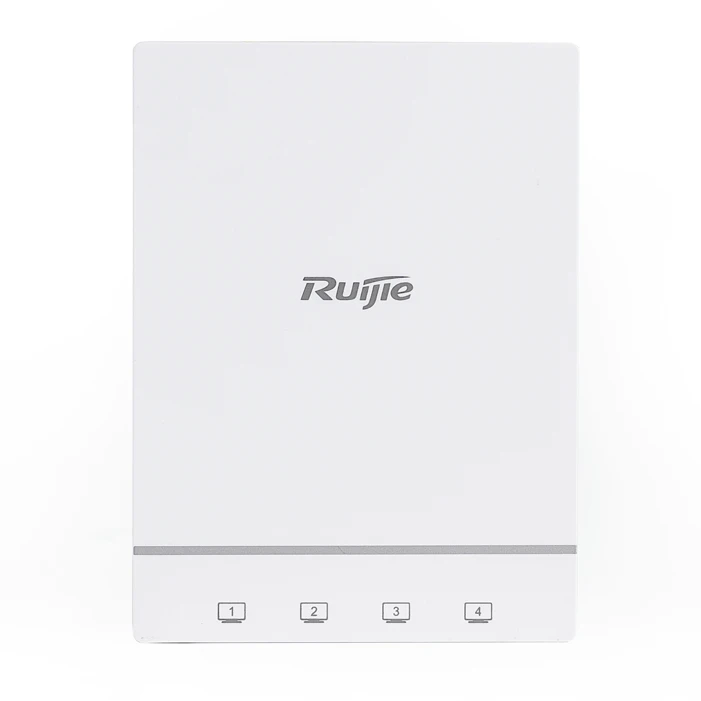 Внутрішня бездротова дводіапазонна точка доступу Wi-Fi 6 для кріплення в стіну, Зручне налаштування через веб-Ruijie Cloud, або мобільний додаток; подвійне радіо, дводіапазонне: канал 1: 2.4G 11ax: 2?2 MIMO, канал 2: 5G 11ax: 2x2 MIMO; Підтримка одночасних стандартів 802.11a/n/ac/ax і 802.11b/g/n/ax; Макс. пропускна здатність 2,4G: 574 Мбіт/с, Макс. пропускна здатність 5G: 1,2 Гбіт/с, Макс. пропускна здатність на AP: 1,775 Гбіт/с; Передній: 4 порти Ethernet 10/100/1000 Мбіт/с, Задня: 1 вихідний порт 10/100/1000 Мбіт/с; 1 мікро USB; Протокол IoT Підтримка Bluetooth5.0 (BLE), Zigbee, режим FAT/FIT; Максимальна кількість клієнтів на одну точку доступу 1024; 0°C~45°C, Живлення PoE 802.3af